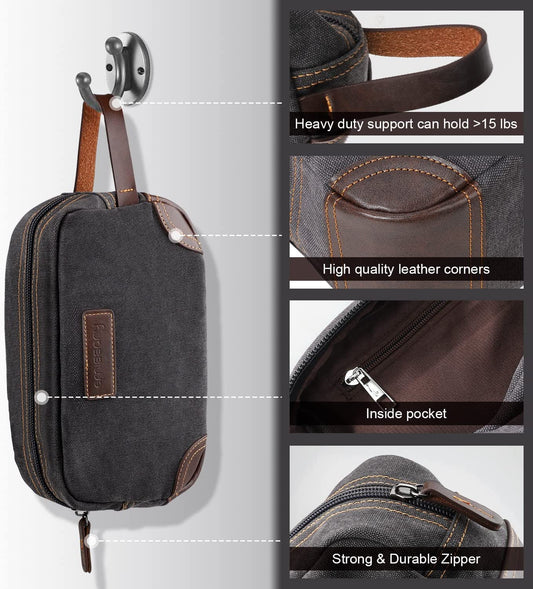 Travel Toiletry Bag for Men, Leather and Canvas Toiletry Bags, Dopp Kit for Men, Travel Bathroom Bag Men'S Shaving Kit, Travel Kit Small Bag for Men, Shaving Bag for Travel Accessories (Gray)